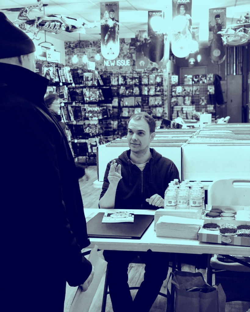 I was born in the 80’s and am a lifelong comics and pop culture fan. Both have saved my life countless times. I’ve expressed myself artistically in a lot of different ways over the years — I released a trio of albums when I was a puppy, I started publishing my own books soon after with the help of Kickstarter, I started Awesome For Hire — and I always wanted my strange journey to lead to comics. In August of 2018, I released my first comic book: The Flying Squirrel, which is part of a flawed superhero series called The Weirdos. In February of this year, I released two more books in the series: The Sketch and The Blue-Ringer. And finally, just this August, I released the fourth and fifth books: The Wait, and (the grand finale!) The Weirdos. I write, draw and produce all of my own work. I went to art school for a minute, said, “Nah, I’m good,” and am mostly self-taught. I write books for adults — that look like they were drawn by a child.