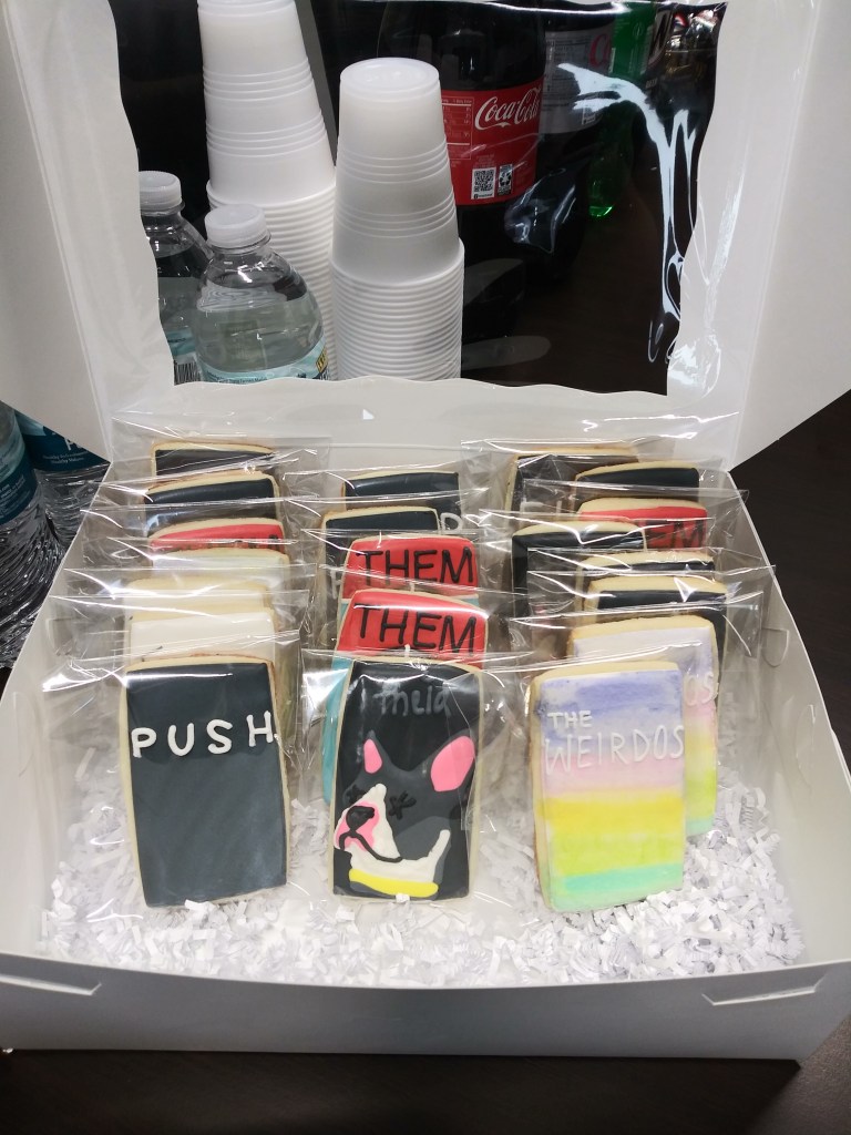 First of all: look at those cookies. LOOK AT THEM. Never in my wildest dreams (and having my own cookies is one of my wildest dreams) could I imagine my work as dessert, and done so dang well. It legitimately brought tears to my eyes. So many thanks to Cookies by Ava for this impossibly cool treat.