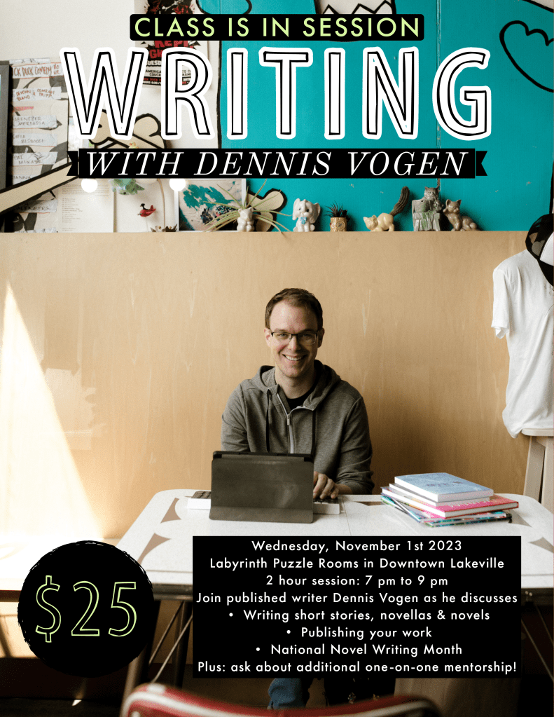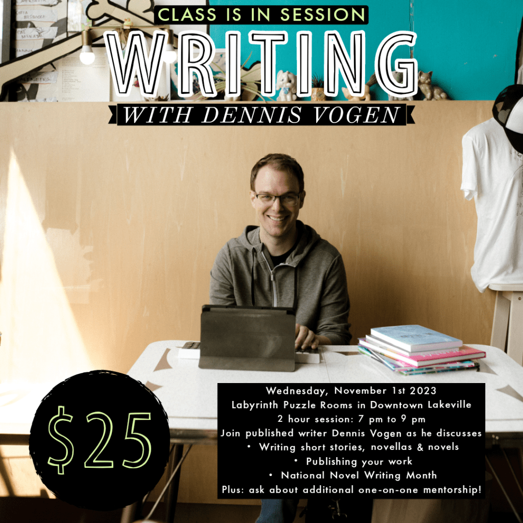 On Wednesday, November 1st, from 7 pm to 9 pm, I will be at Labyrinth Puzzle Rooms in Downtown Lakeville to discuss:
