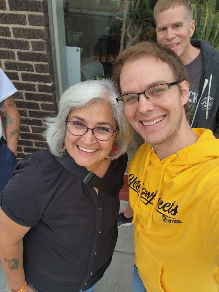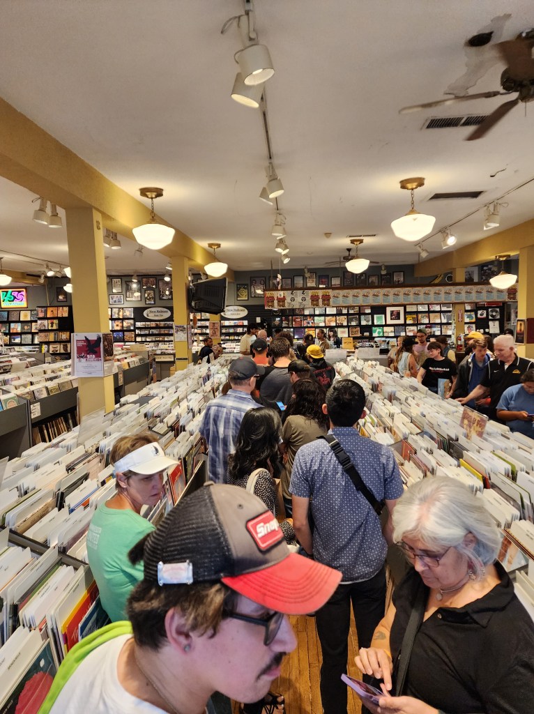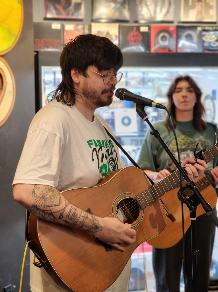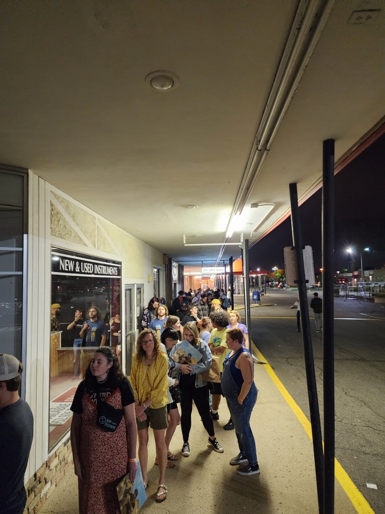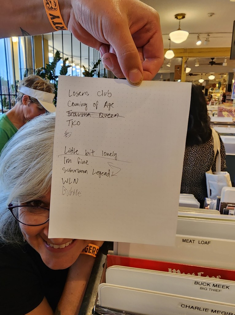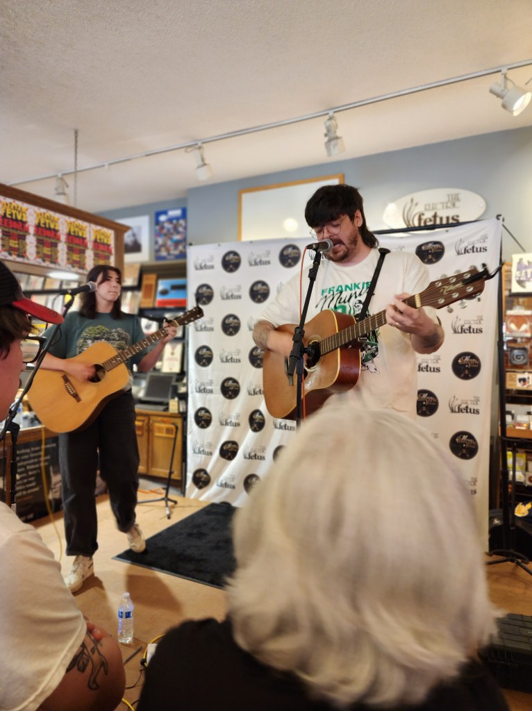 I started immediately posting about them because is anything even real if you don’t? (Trick question: no, it isn’t.) I tried to get into their winter show, and couldn’t attend the summer one; but their debut album, Suburban Legend, dropped yesterday, and they played two gigs tonight to celebrate, at the legendary Electric Fetus and Down in the Valley record stores. It was euphoric to get to hang at both.