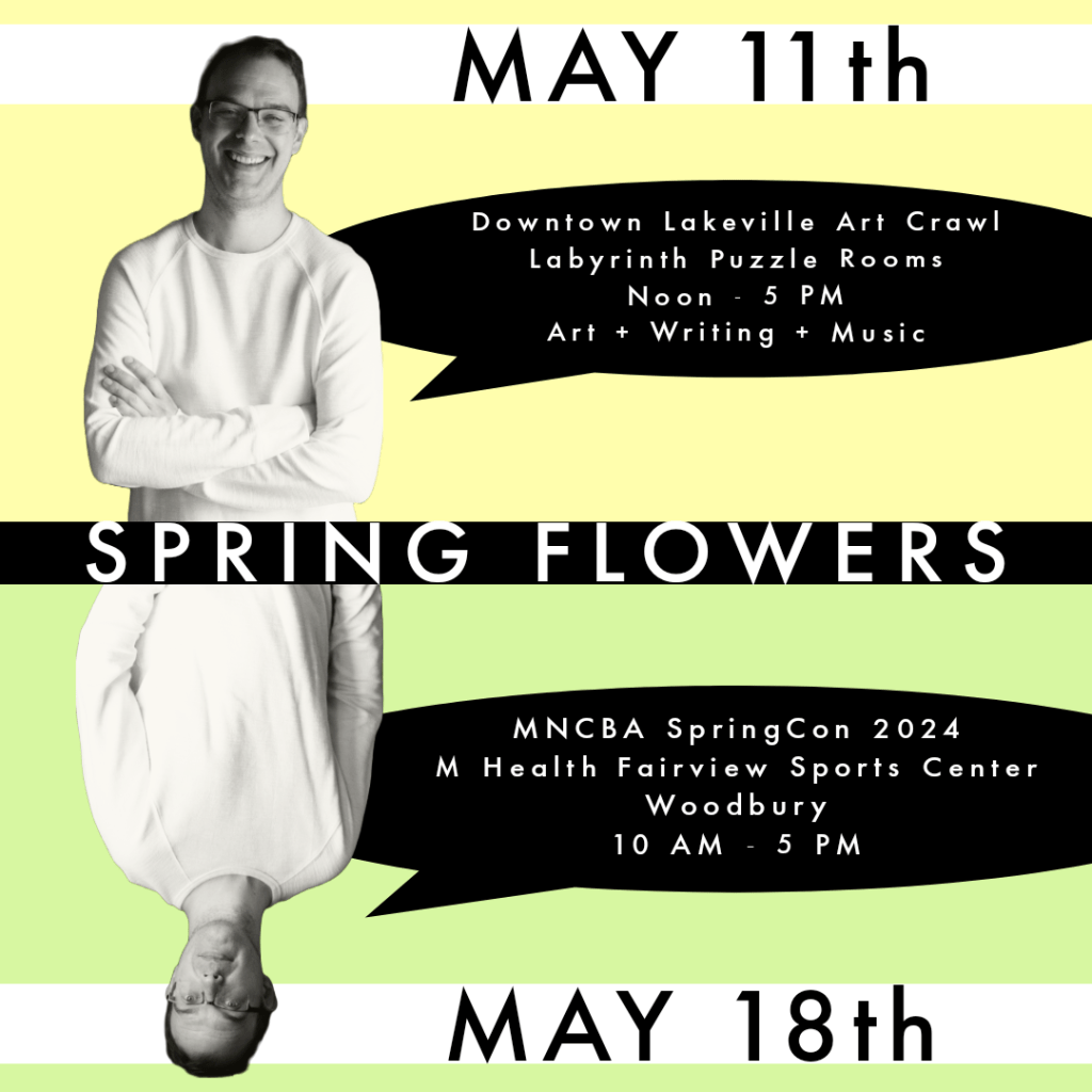 • May 11th: Downtown Lakeville Art Crawl, Labyrinth Puzzle Rooms, 12 – 5 PM.
