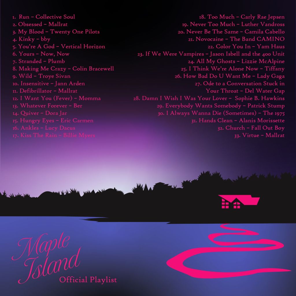 Folks seem to like it when I share these (I’ve curated playlists for Cold World, The Weirdos, Brushfire, etc.), so here’s the soundtrack behind Maple Island. Some of these songs appear in the story itself; some will give you more insight into the characters, ideas and themes; some of these are straight up spoilers. But all of them were essential parts of my life and process as I wrote this book.