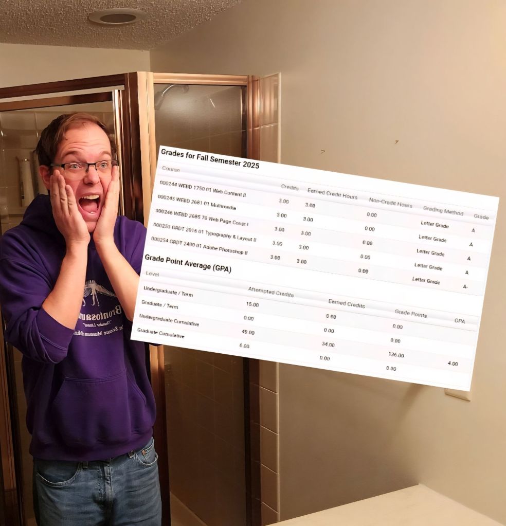 Feelin’ like Kevin McCallister over here because grades dropped today and, for the first time in my middle-aged college era, I did not get straight A’s.